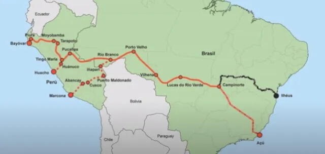 Mientras se firmaba la Declaración, los funcionarios de Brasil trabajaban desde hacía tiempo a contrarreloj para anunciar una obra de infraestructura que, junto al puerto en Perú, implica una integración logística de los intereses chinos en Sudamérica: hablamos del Tren Bioceánico Bayovar-Brasil, que unirá el puerto de Sechura, Perú, con el de Santos, Brasil.