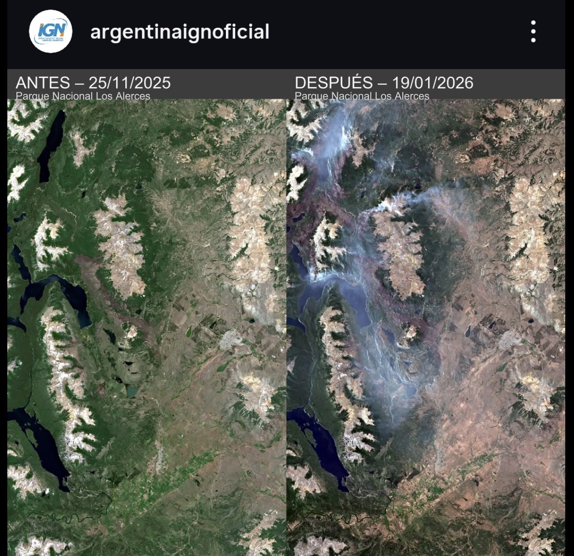 El primer humo lo fotografió un poblador de Lago Verde, mientras realizaba un guiado de pesca, vio el foco y, como tenía conexión satelital, dio aviso a Parques -porque sí, la mayor parte del lugar no tiene señal de telefonía-.