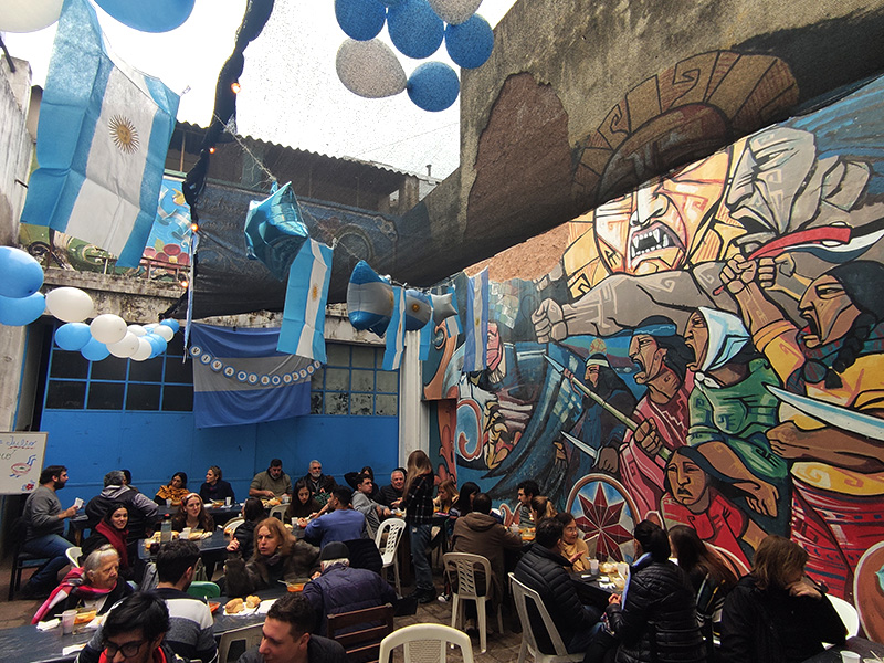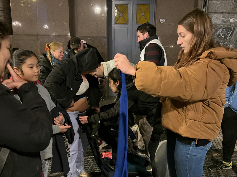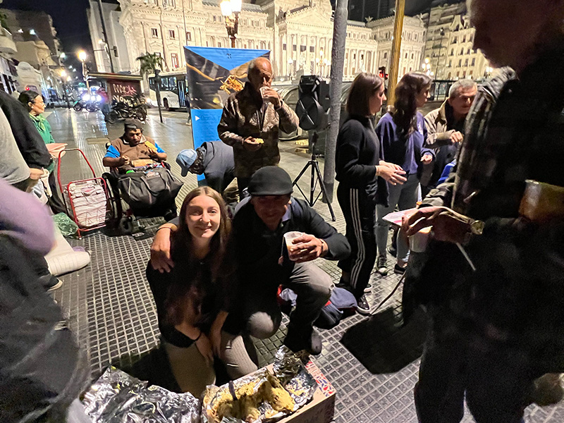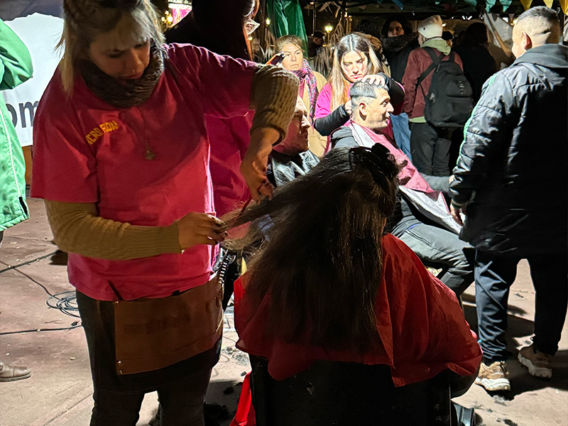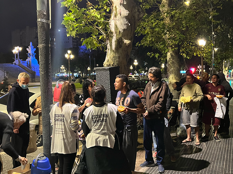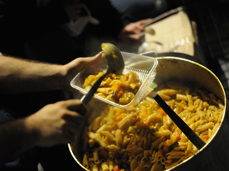 La preparación comienza todos los viernes a las 15 horas. El menú varía según la estación del año y alcanza para 120 personas. Además, preparamos bizcochuelos, postre, café con leche, mate cocido, té y jugos. A las 18 horas nos vamos para la Plaza Congreso (Capital Federal) o a la esquina de 7 y 50 (La Plata), donde compartimos la merienda y cena con música, juegos, ropero comunitario y una mesa de atención de derechos sociales.