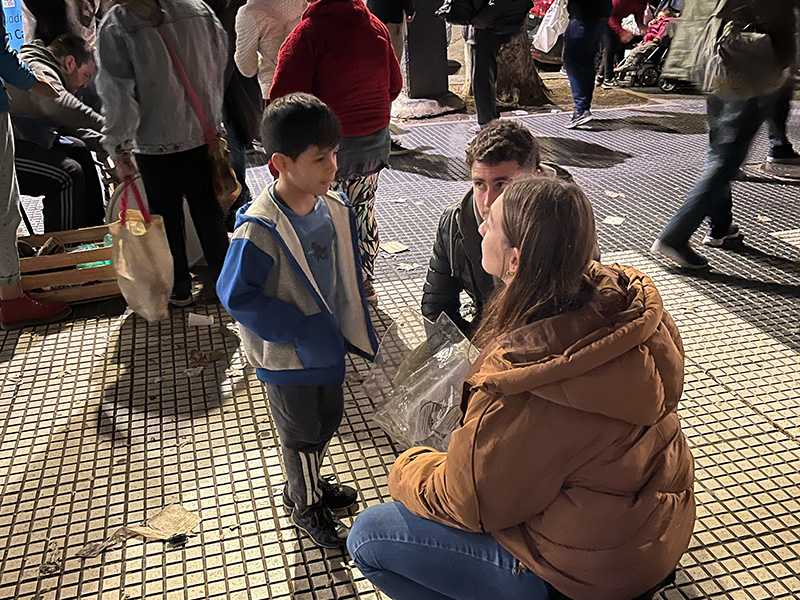 Hacemos ayuda social integral, en alimento, ropa, trabajo y atención de derechos sociales, mediante el encuentro y el diálogo en el barrio.